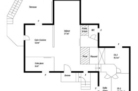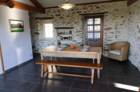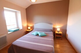 Ce gîte bénéficie d’un terrain non clos de 1000 m² avec portique et d’une terrasse avec salon de jardin, barbecue et chaises longues. Séjour avec poêle (bois 60 €/m3), TV écran plat et lecteur DVD, coin-cuisine intégré, 1 chambre avec 1 lit 2 personnes, 1 chambre avec 2 lits 1 personne, coin jeux avec livres et jeux enfants, salle d’eau avec douche à l’italienne, wc indépendant. Chauffage électrique selon consommation.